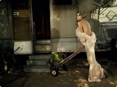 Editorial by Alexi Lubomirski for Vogue Germany Sep 08 featuring Hilary Rhoda. Entitled “Nur du und ich” translated: just you and me. Via Dustjacket Attic