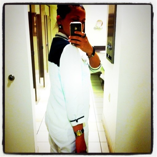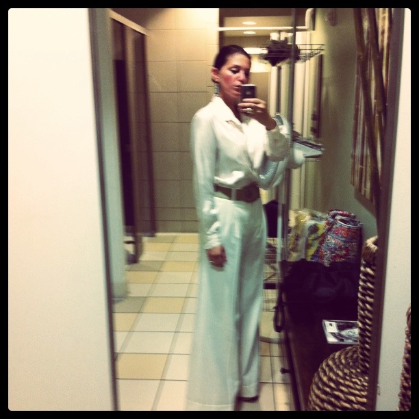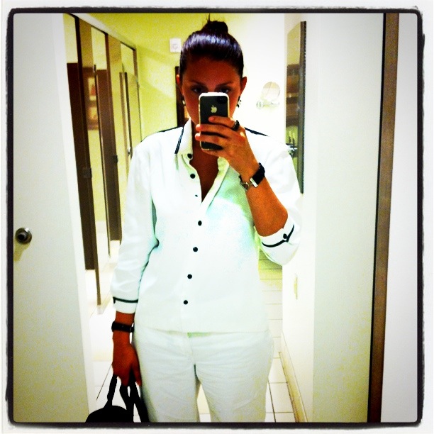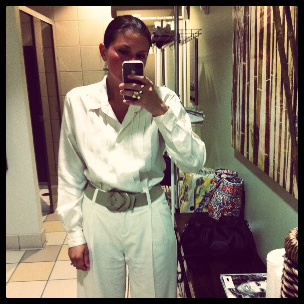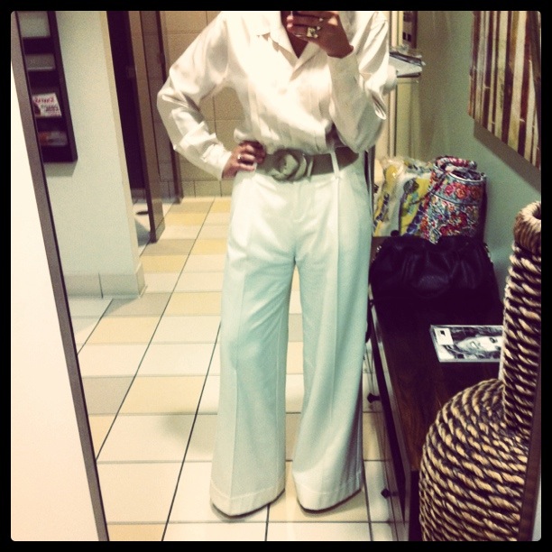 Yesterday I wore these cream high waist pants with an ivory blouse. I love this look because it’s sophisticated but still shows off curves.