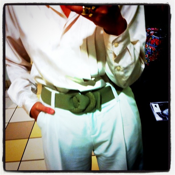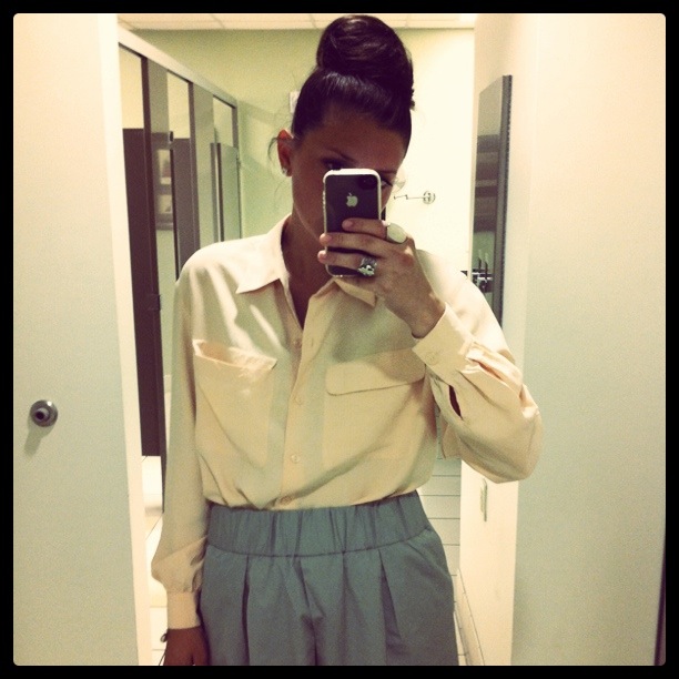 (what i wore: trousers – new york & co, blouse – vintage from potter’s house, belt – vintage from the grey dog, rings – forever21, earrings – a birthday gift from my soon to be husband)