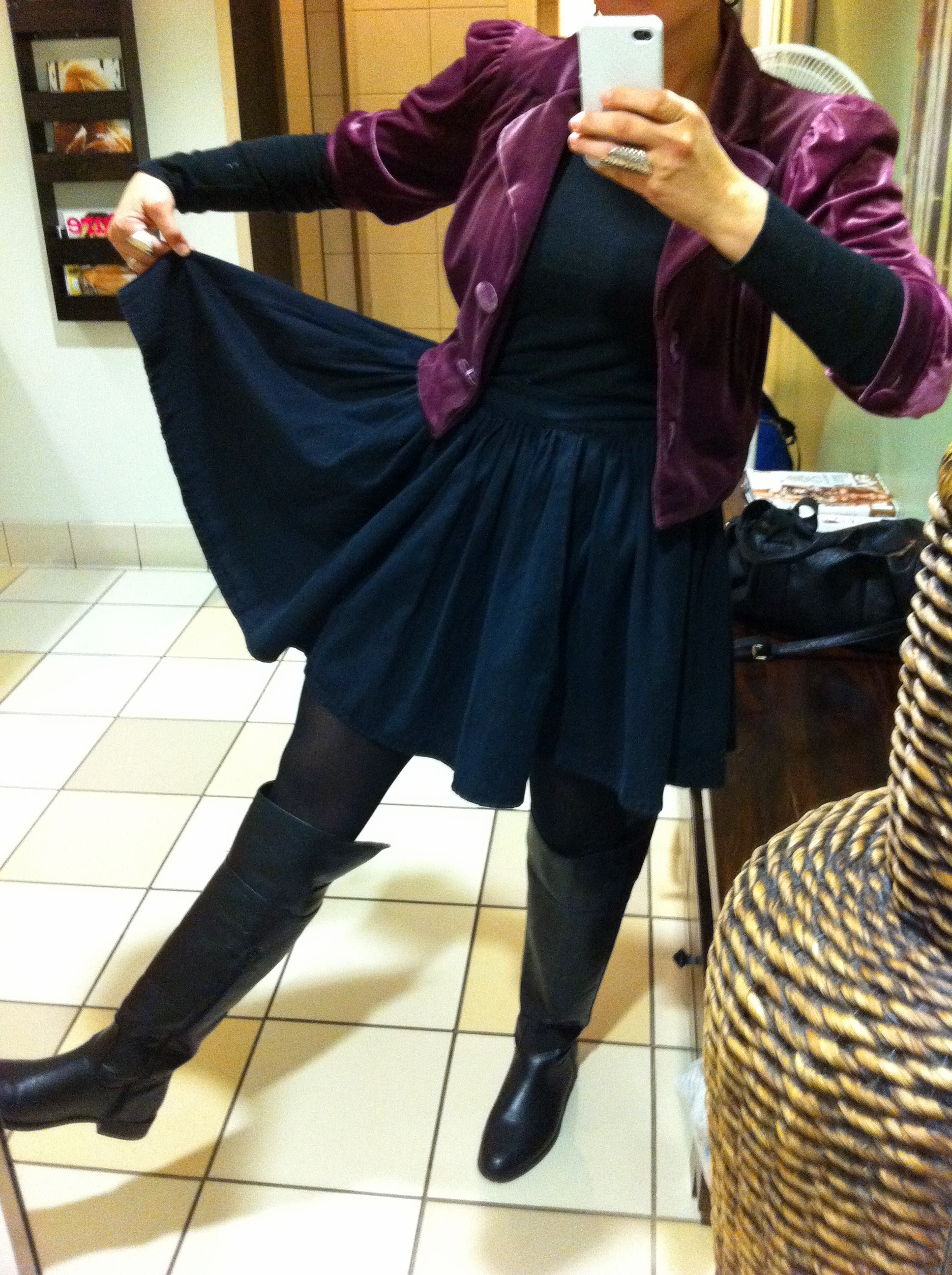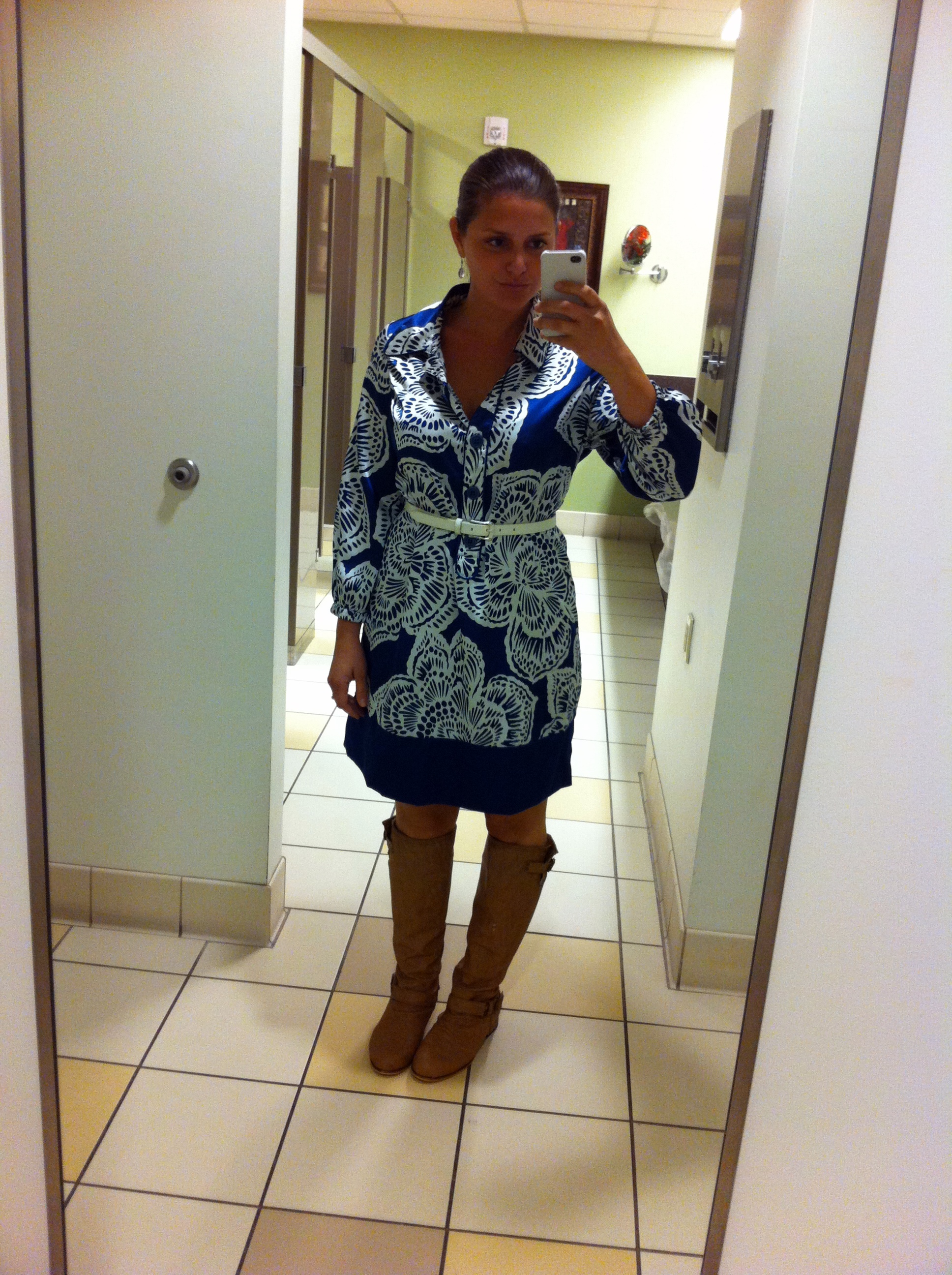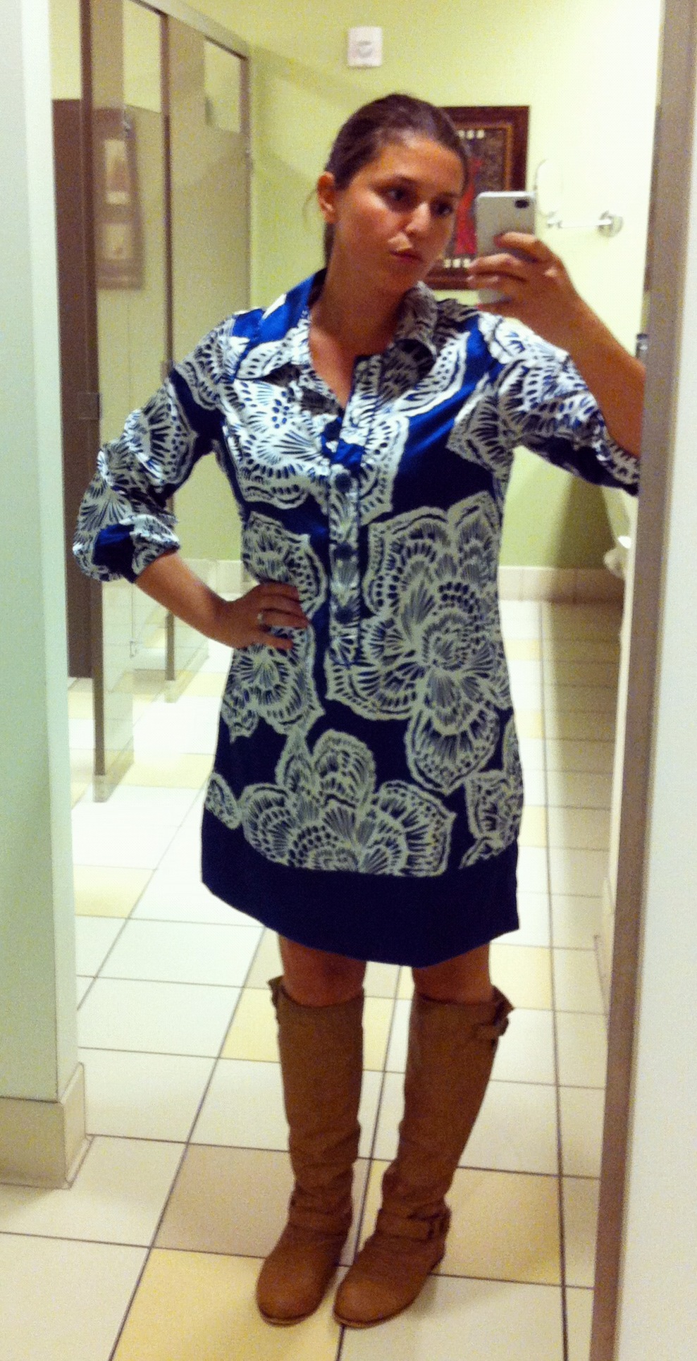 (what i wore: sweater dress – bcbg from daisy exchange, socks – forever21, heels – nine west, jacket – tj maxx, necklace – dillards)