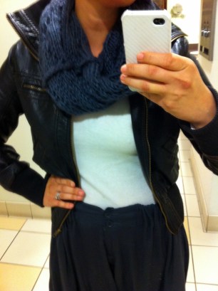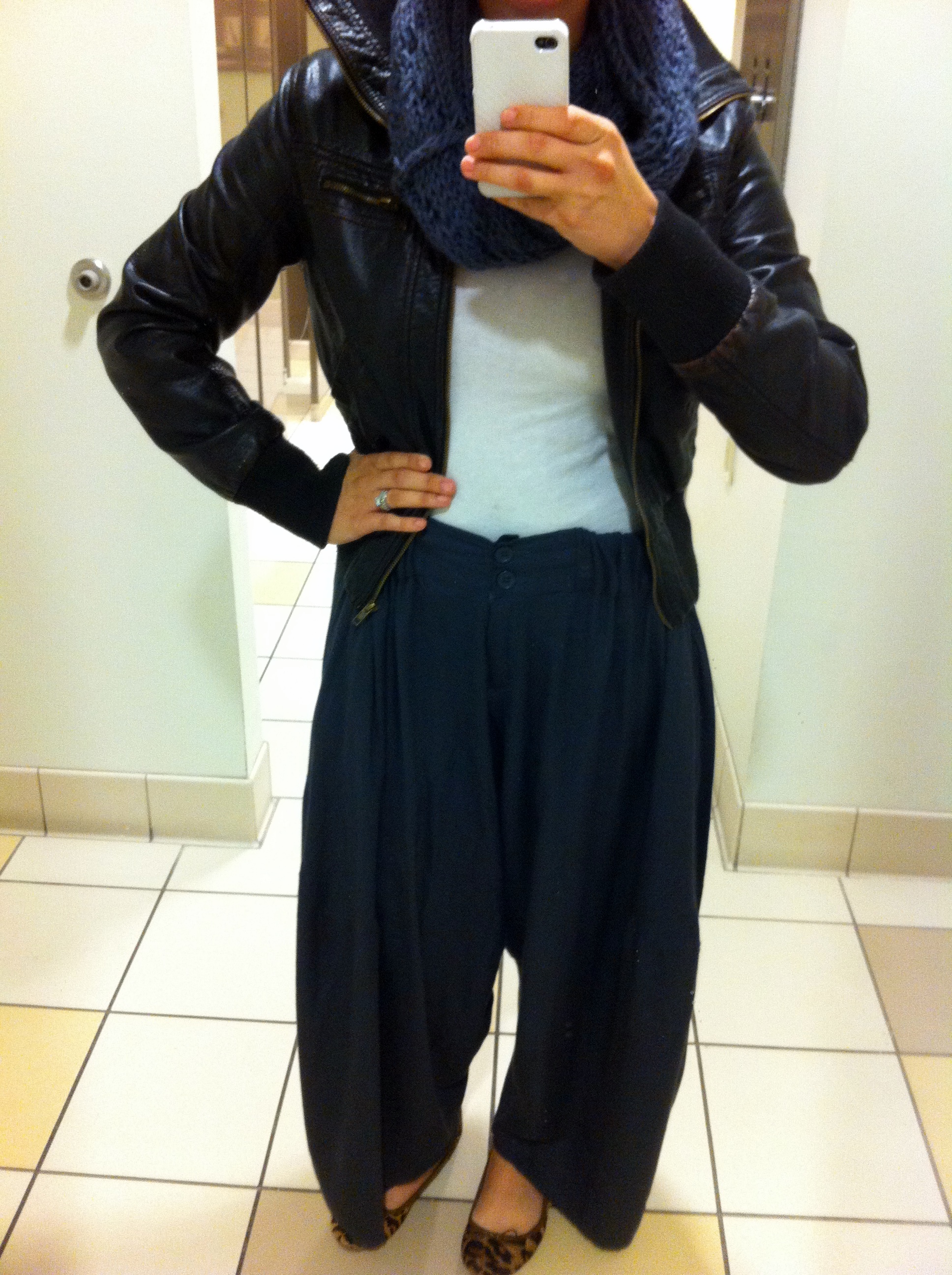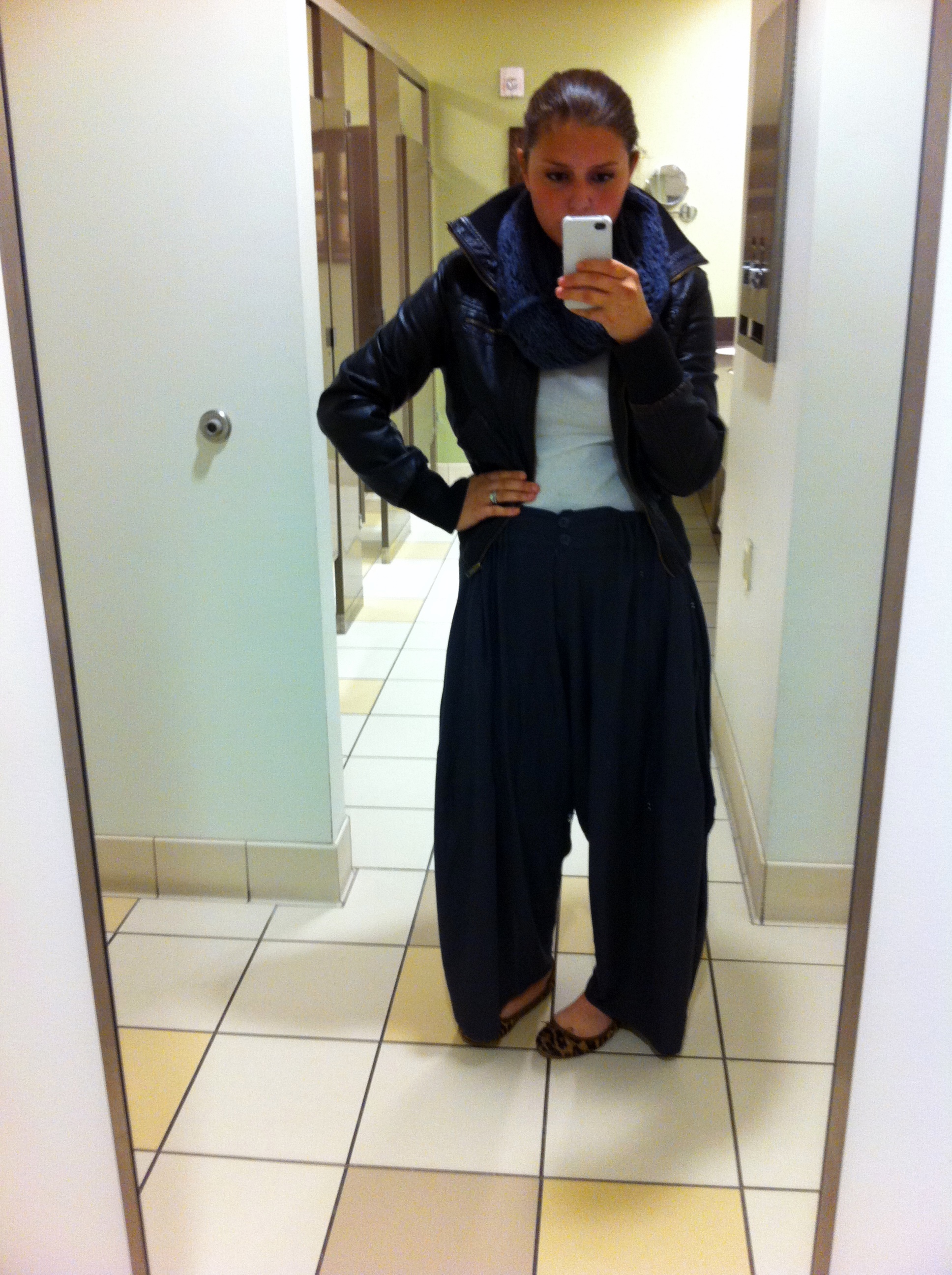 (what i wore: pants – riffraff via cheap thrills, flats – gap, shirt – walmart – jacket – tj maxx, scarf – forever21)