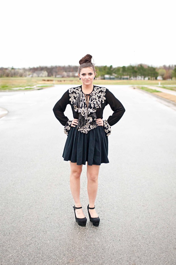 what I wore: dress – vintage mr. eddie from cheap thrills, belt – vintage, platforms – forever 21, necklace & bracelet – vintage, earrings – kate spade, makeup by mollie booth, photos by mallory berry—