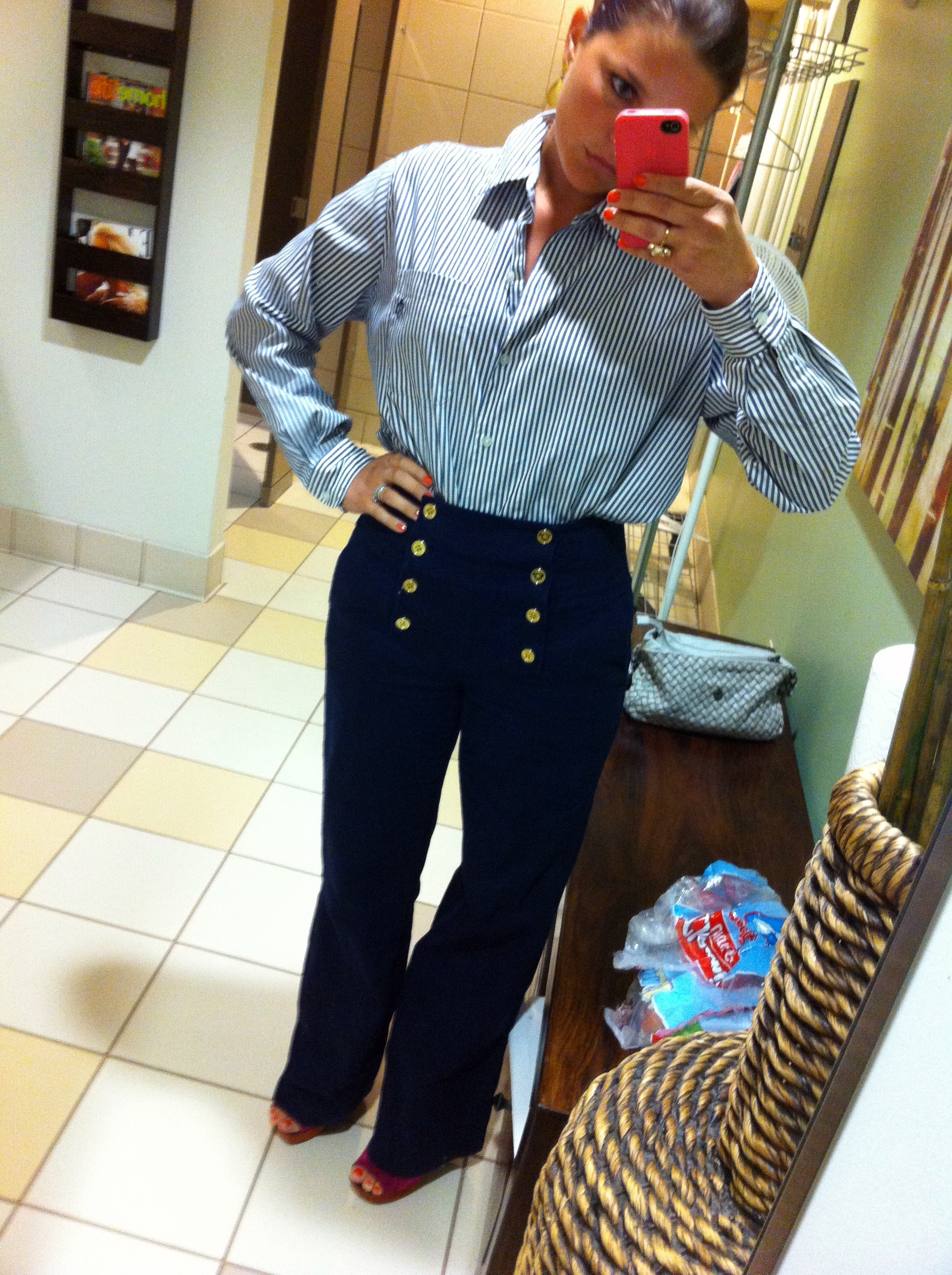 These sailor pants took no time to become my favorite trousers. They create a flattering silhouette and are dressy enough for work but they’re navy so they can also be dressed down with a more casual top.
