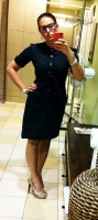 what I wore: dress – french connection (thrifted), heels – quipid, glasses – shop ultra, watch – bcbg, bangles – vintage & dannijo, nails – revlon