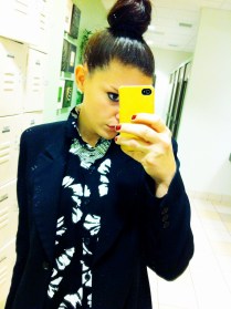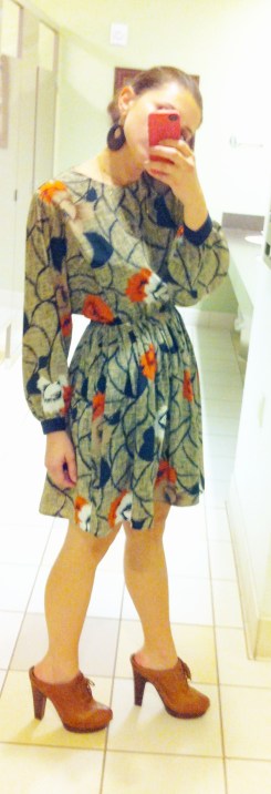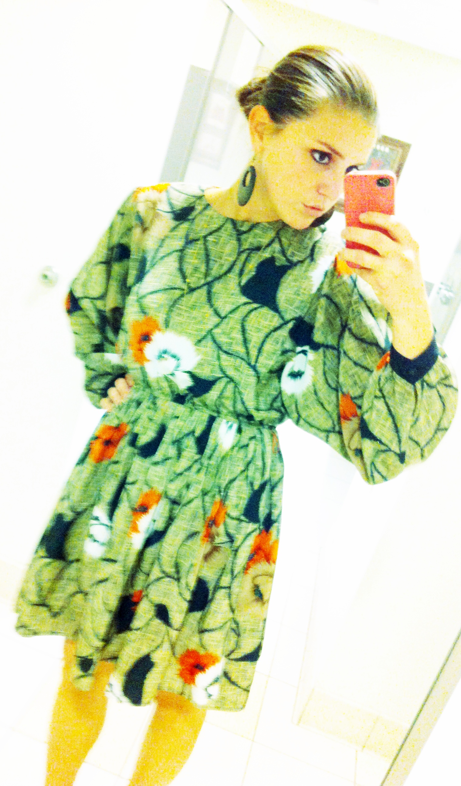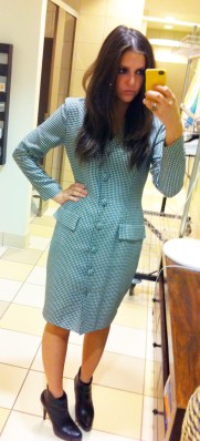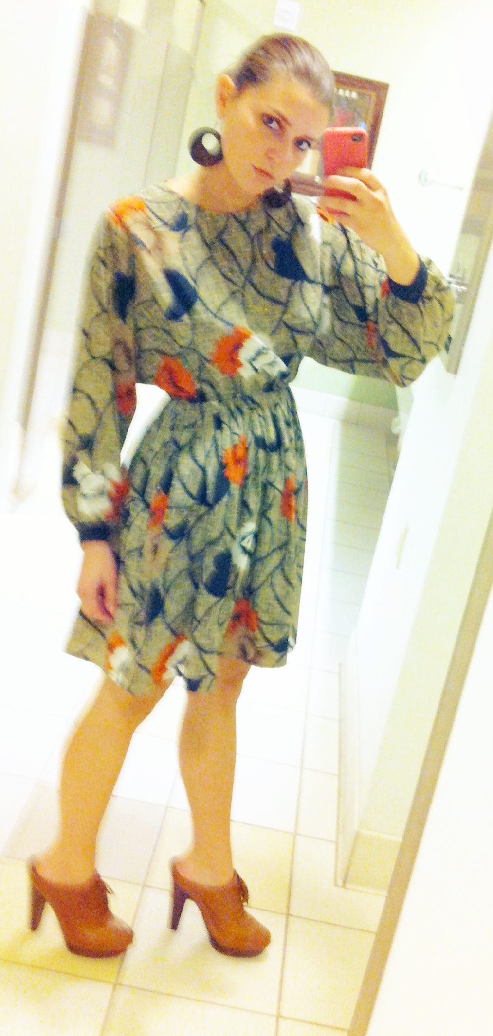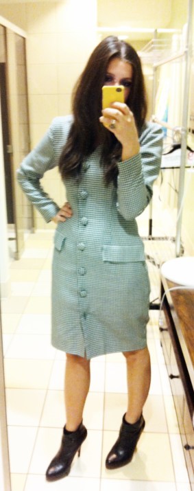what I wore: fabulous spandex dress – vintage td4 by eletra from cheap thrills (find it on etsy), thigh high boots – aldo, socks as gloves