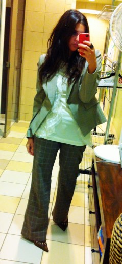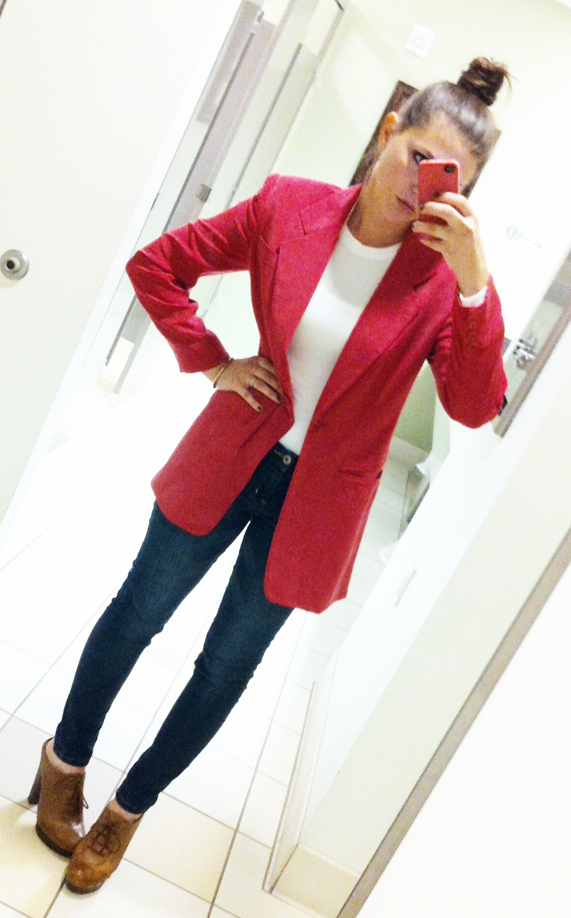 what I wore: wax pants – 1st kiss via tj maxx, boots – jcrew, blouse – california krush via grey dog (find on etsy here), blazer – gianni (thrifted), necklace – vintage mom’s