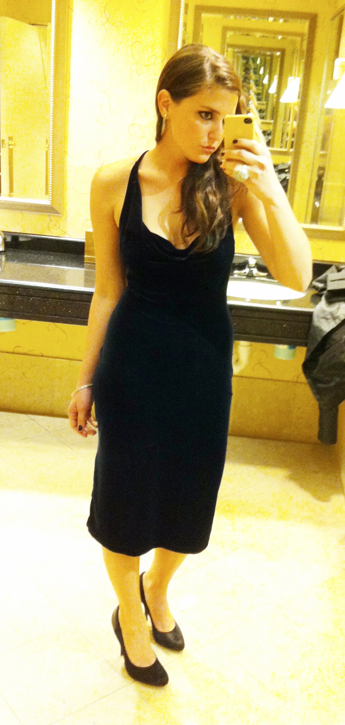 Last weekend, we attended the post-wedding party of some friends. The soiree was held on the top floor of the Peabody hotel in Little Rock (the view!). I chose a midnight blue velvet Bisou Bisou number and I loved the effect, velvet makes it appropriate for Fall/Winter but the slinky factor makes it a fun party dress.