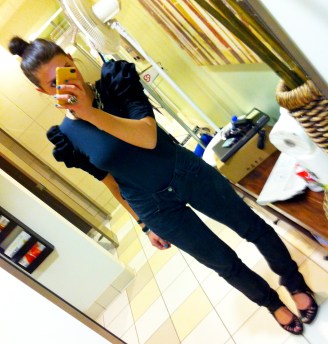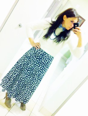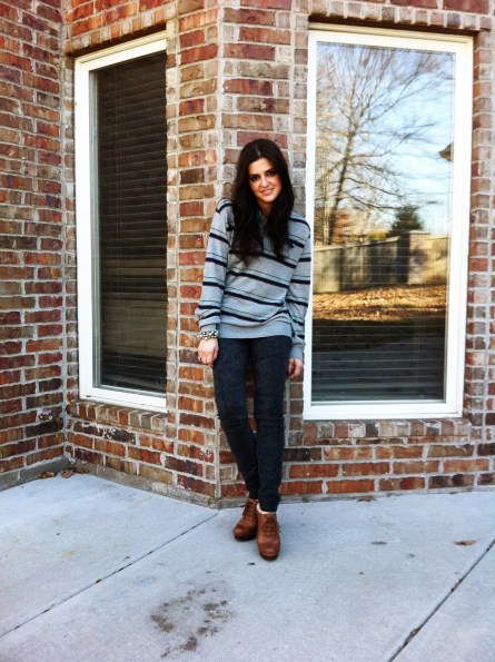 what I wore: sweater – thrifted, jeans – blank nyc, clogs – sam edelman, necklace – my grandmothers, earrings – mom’s, jingle bracelet – forever21