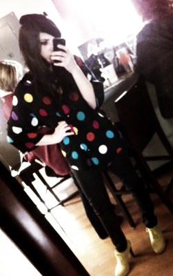 what I wore: dress – thrifted miss dorby (find on ebay), mohair sweater via cheap thrills, bowtie – target, heels – forever21