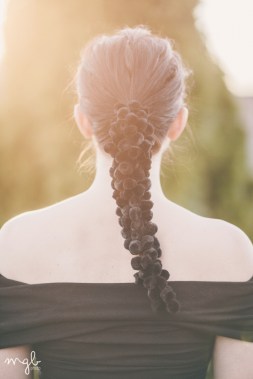 Nicole put my hair back in to casual ponytail and wrapped the length in pom poms