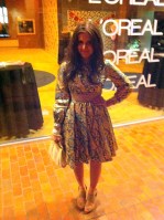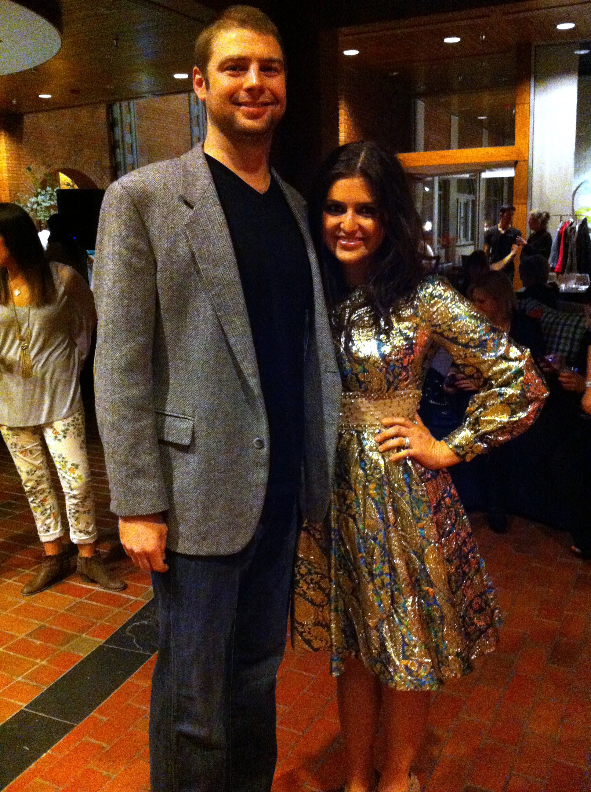 Last Friday at NWAFW, I wore a dress I’ve been dying to wear since I purchased it a few months ago. It’s gold/green/blue lame with sequins and a nude panel, so it’s not exactly the kind of thing you can wear out on a random night. My husband had to practically sew me into it (and rip me out!) but it was totally worth it. There was really no better place to don it than a fashion function and no less than one minute after I walked through the door, a girl asked if she could take my picture. Talk about validation!