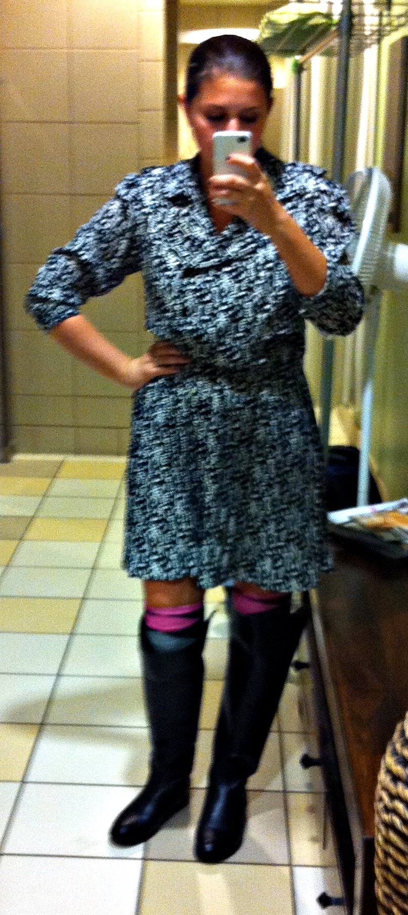 what I wore: fabulous spandex dress – vintage td4 by eletra from cheap thrills (find it on etsy), thigh high boots – aldo, socks as gloves