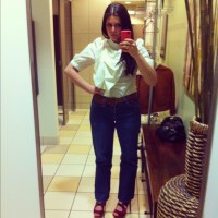 This outfit is the result of having entirely too much time to get ready. Yesterday morning I woke up at 4am and could not go back to sleep (rare occurrence). So I got up, showered and spent two hours leisurely getting ready, as there was nothing else to do. I like this outfit even though it’s a lot going on. I find that I like looks that either say a lot or say next to nothing. Sometimes you need 2 necklaces, 3 bangles and 6 rings to feel dressed, sometimes it feels like the fewer the better. I’ve been wearing a lot of blue lately. I think it’s nice to do a really feminine hair style with such a tailored look. I’m really excited about an upcoming collaboration. More details soon!