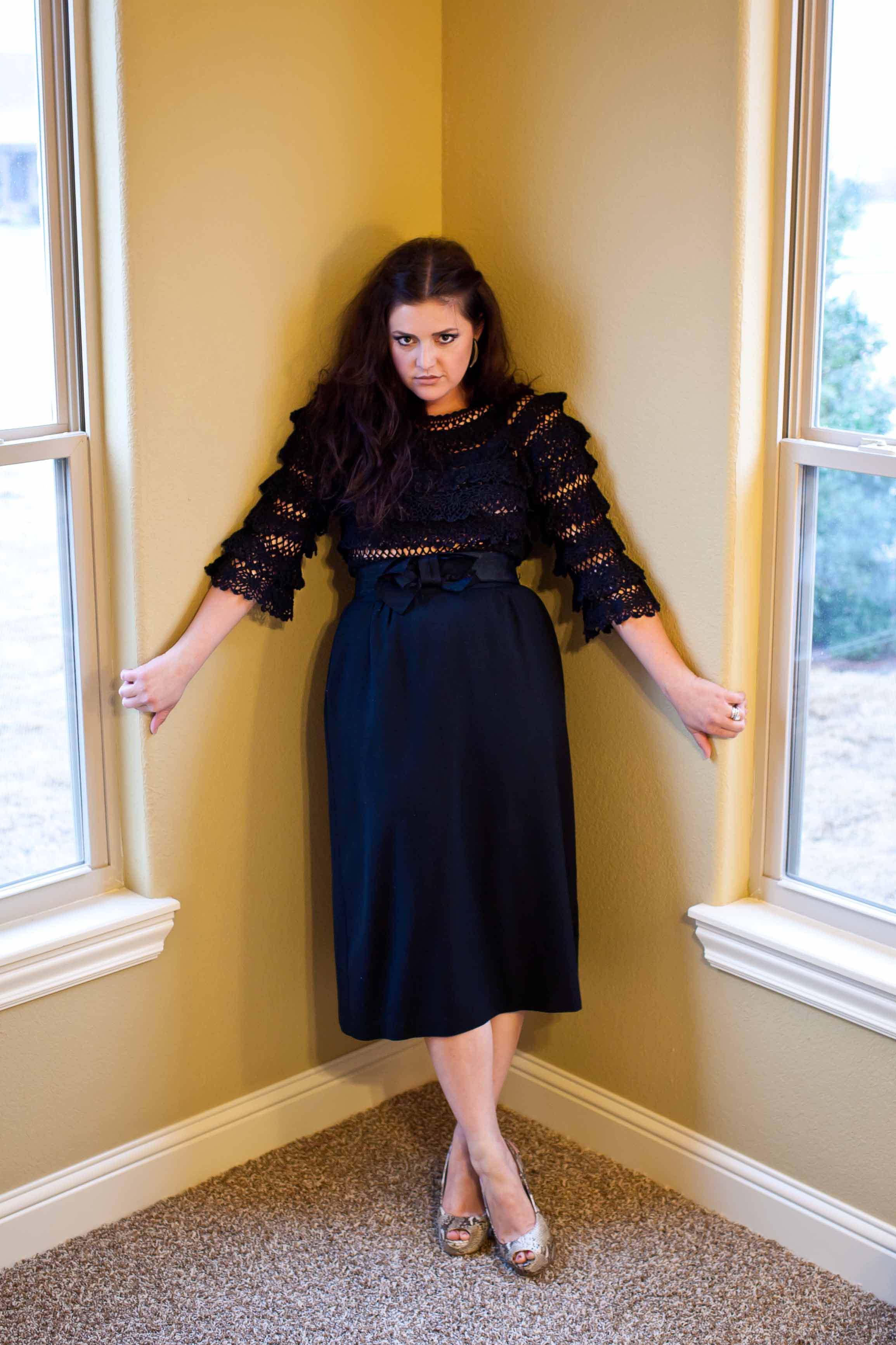 The details for the clothing in this shoot are basically as follows: thrifted. Pretty awesome! Payton informs me that she goes thrifting two, sometimes three times a week, and she always hits the dress racks. Her jewels are vintage from Mae’s Emporium and the shoes are from Target. I am pretty sure you love her even more now!