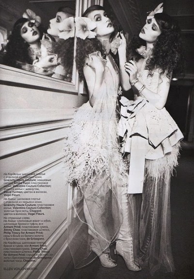 Photographer: Ellen von Unwerth. Stylist: Katerina Mukhina. Models: Anais Pouliot, Cordelia K and Kristians Silis for Vogue Russia April 2011.