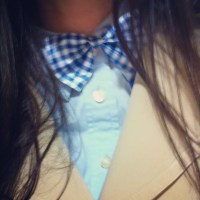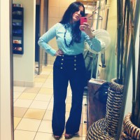 This outfit is the result of having entirely too much time to get ready. Yesterday morning I woke up at 4am and could not go back to sleep (rare occurrence). So I got up, showered and spent two hours leisurely getting ready, as there was nothing else to do. I like this outfit even though it’s a lot going on. I find that I like looks that either say a lot or say next to nothing. Sometimes you need 2 necklaces, 3 bangles and 6 rings to feel dressed, sometimes it feels like the fewer the better. I’ve been wearing a lot of blue lately. I think it’s nice to do a really feminine hair style with such a tailored look. I’m really excited about an upcoming collaboration. More details soon!
